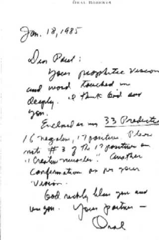Attached is a subsequent note, received back then, corroborating Heaven's message for Oral's hour: